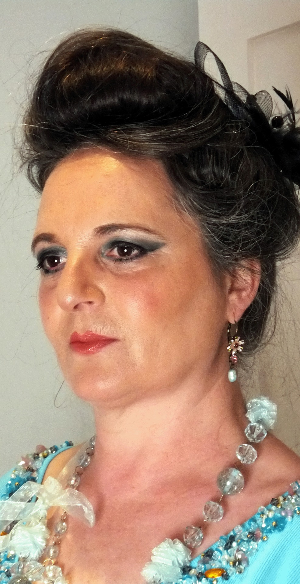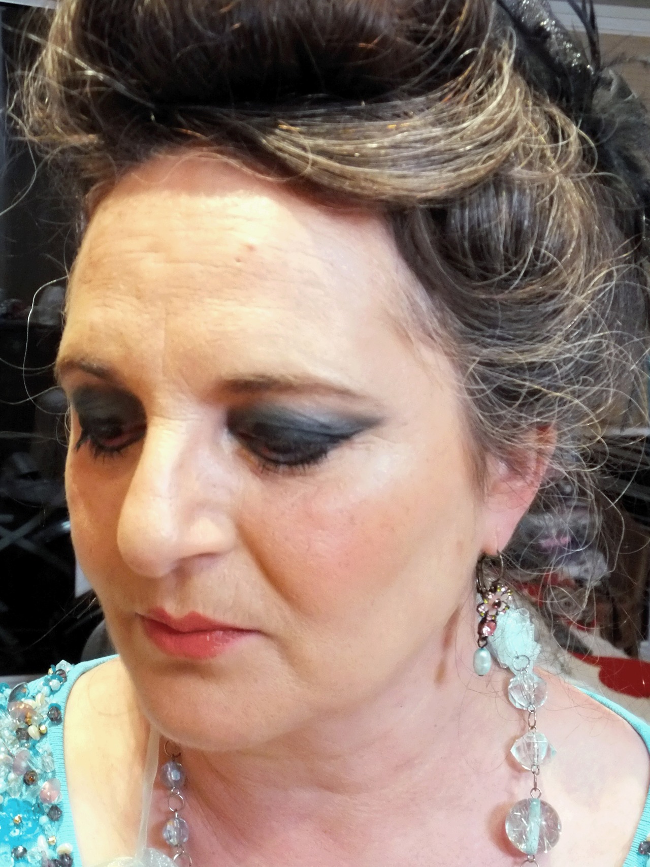 Makeovers, Night Time MakeupEvening hair and make up for special occasion or important function by Ivyupdated on September 9, 2013May 14, 2013Leave a Comment on Evening hair and make up for special occasion or important function Evening art gallery glam Before make up Before make up This is a makeover I did for Rosi. It is an evening look, midnight blue smoky eye. She has a great eye for colour and design so we didn’t a stylist. She is a trained hairdresser and put up her own hair, which really finishes the look smartly.