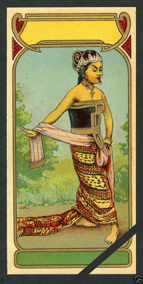These puppets are carved from hardwood, then painted. These puppets are called rod puppets because of the construction.Their clothes are embroidered silk, batik and sequins as per the vintage poster for fabric dye.