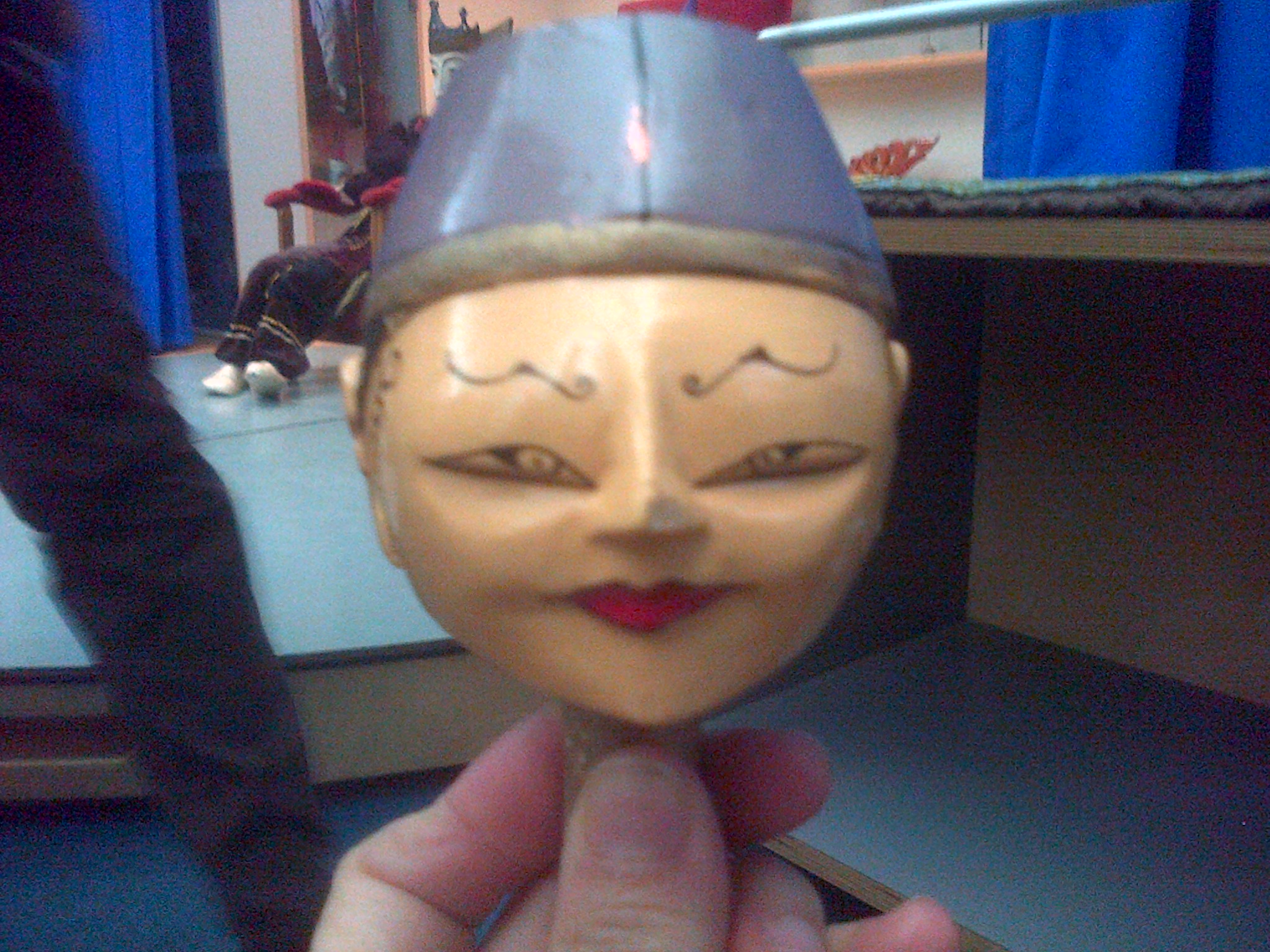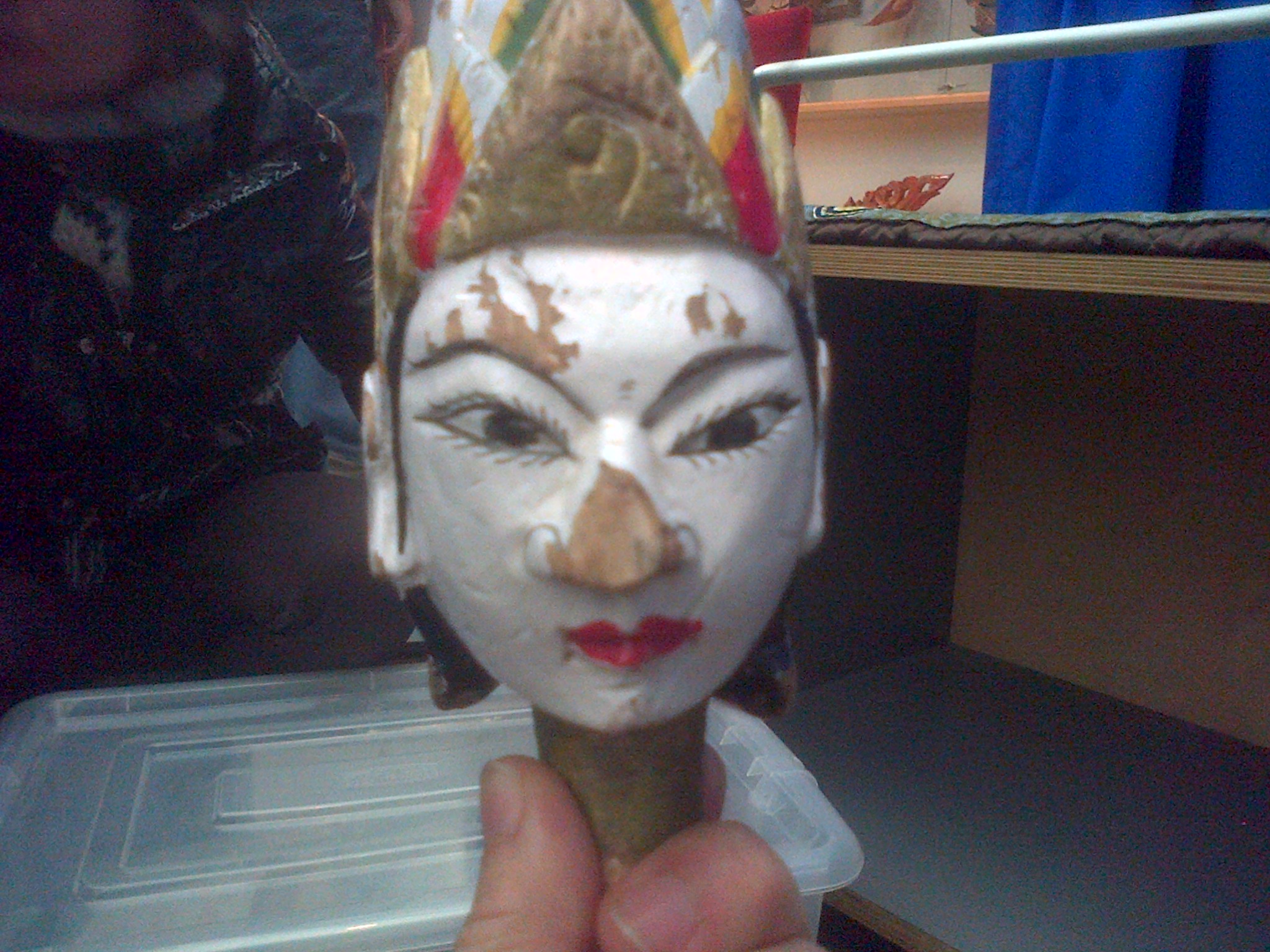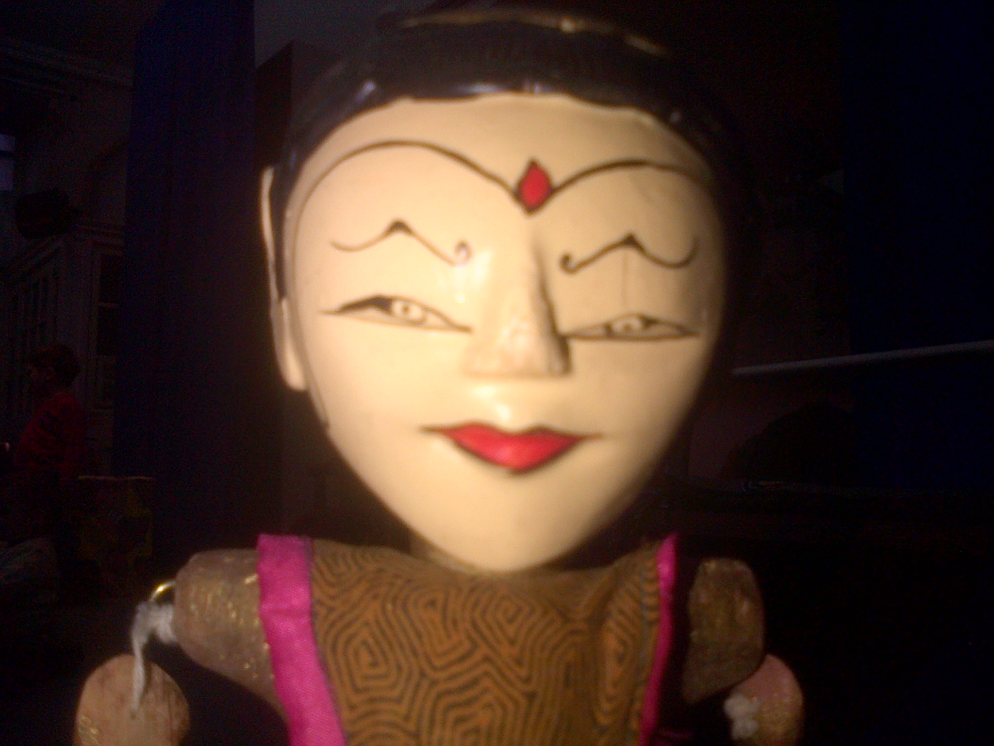 I have loved and played with puppets since I was a child. I am really fascinated with these wayang golek (puppet theatre) puppets at the Hands On Base room at the Horniman today. The first one almost looks real. This is a makeup look I’d like to achieve. Anyone up for it?