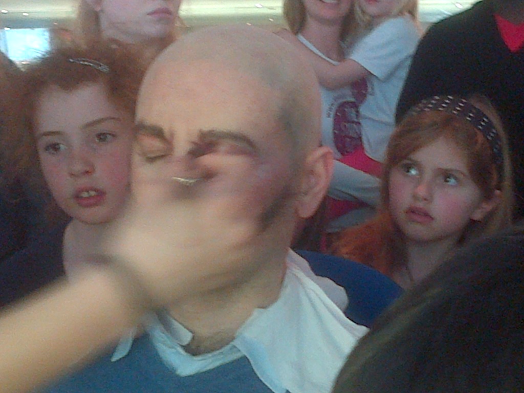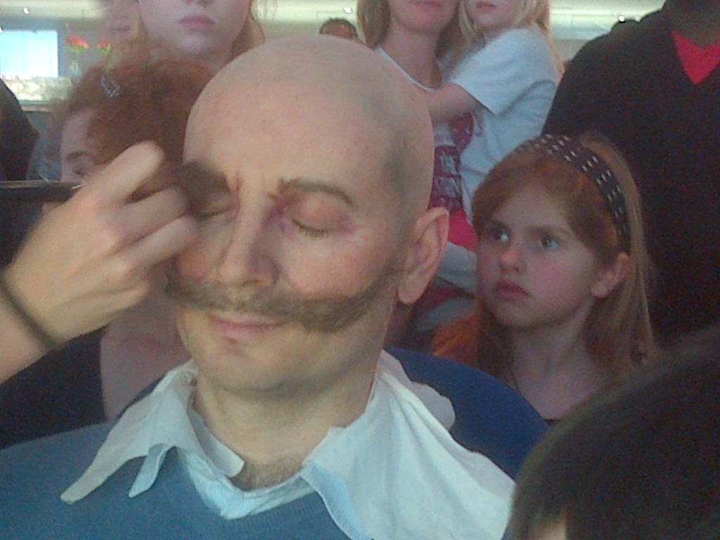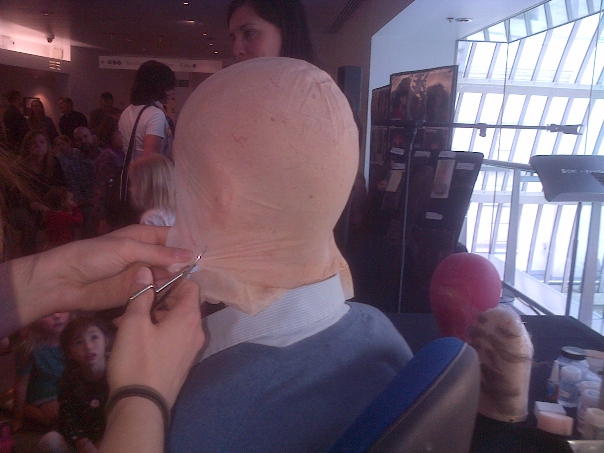 I was at the Royal Opera House family day last Sunday and observed a makeup demo on how to transform an individual into a character for the show using hairpieces, bald cap and makeup.
