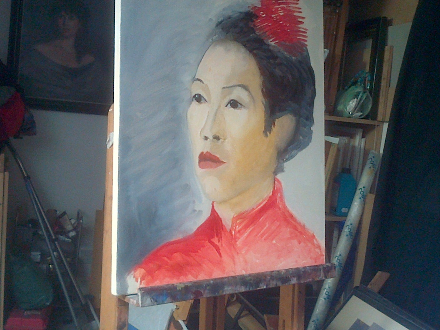 I did a three week stint as an ‘artist’s model’ for portraiture, mainly because I was curious and the pocket money was handy. I chose a Chinese outfit to look more Chinese since I never normally dress up or look formal. I wanted lots of bright flowers on the top of my head, as I am a fan of Frida Kahlo.