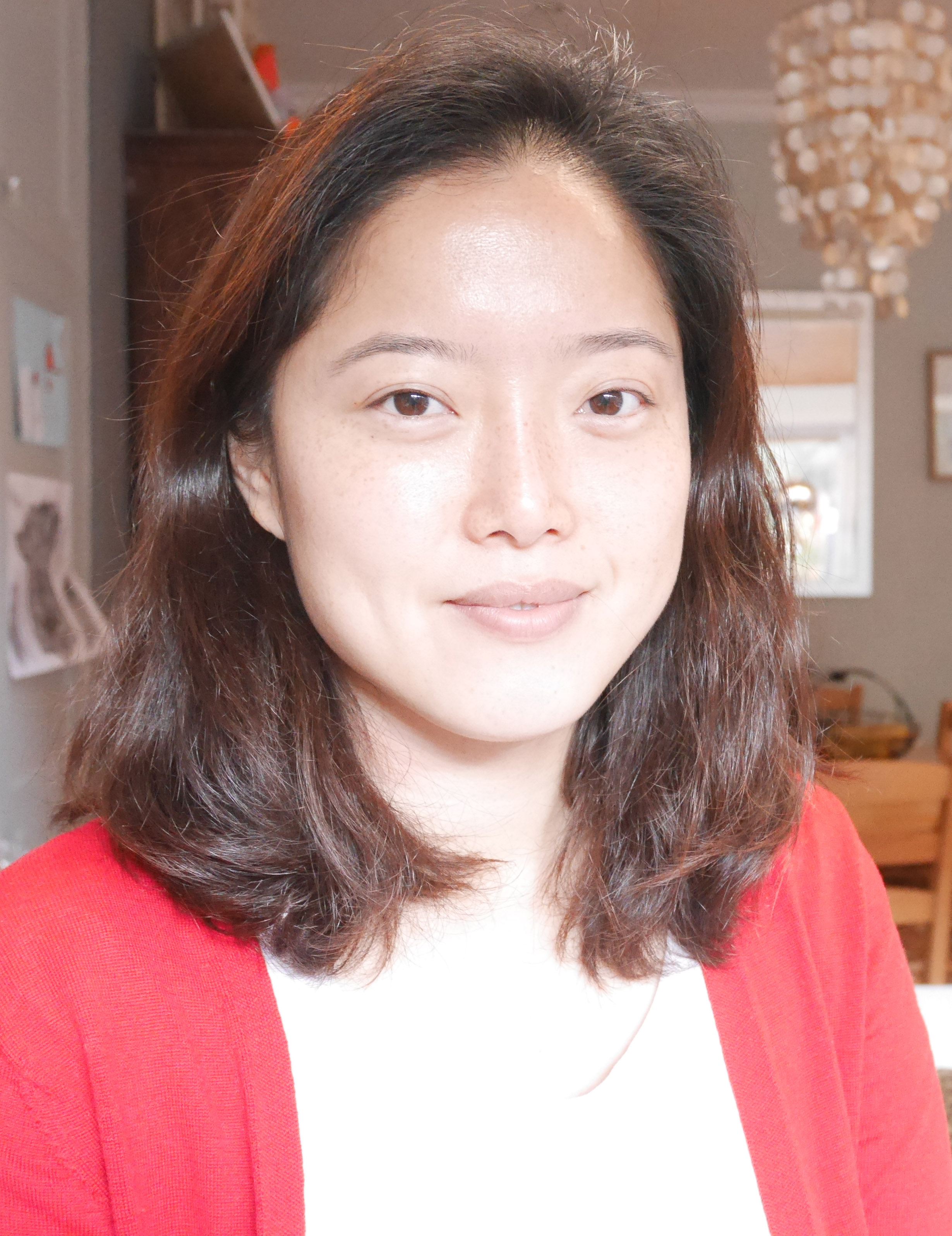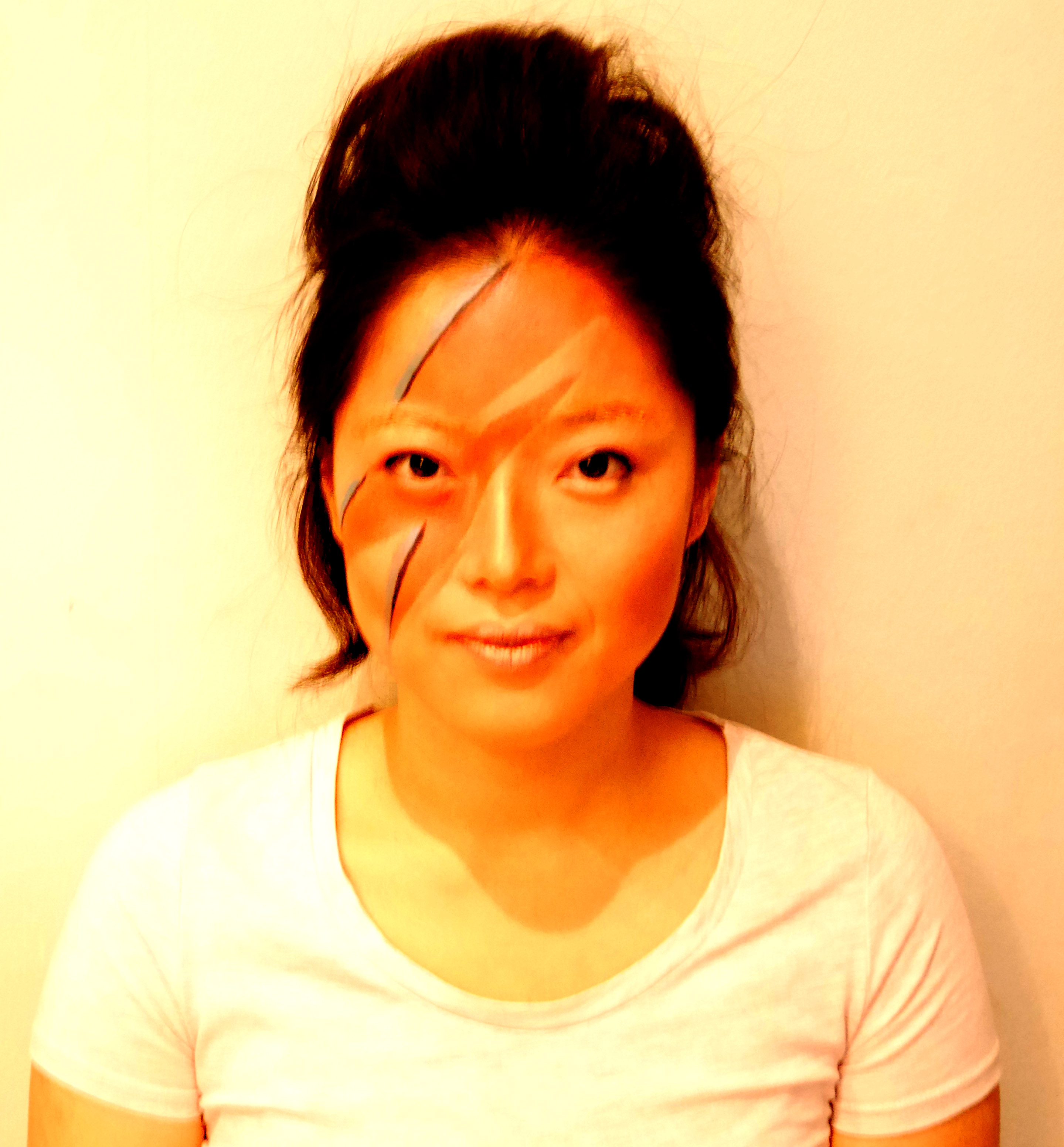 used are from a cheap market palette with around 48 colours or even more, I never counted. They are frosted, satin sheen or shimmer, but not glitter. That would be too harsh. I would use pure pigment but I worry about heavy product fallout. There is no hint of any matt finish as it’s the 1970s! Everything should be shining, glossy and iridescent. Minimal contouring as that is a fairly modern concept. Nina the client is Korean and has perfect Korean skin. She has hooded but symmetrical eyes with double eyelid crease, and her nose is already well-defined and straight. Therefore contouring is kept to a minimum.