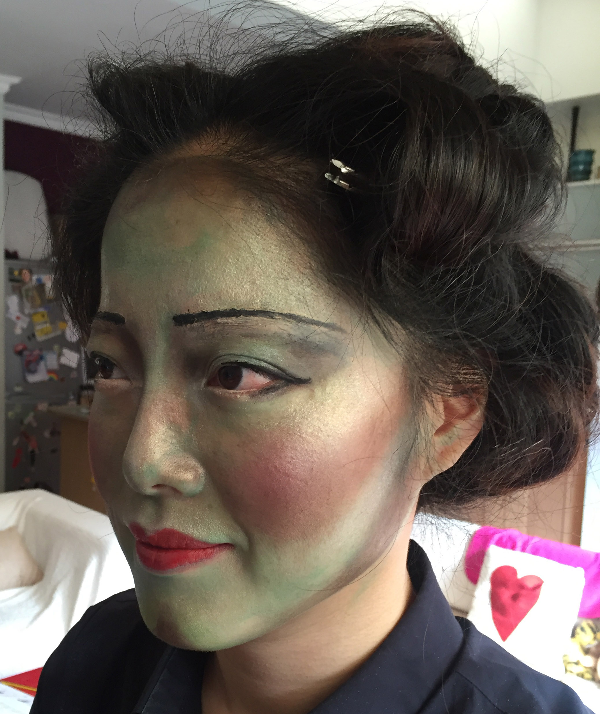 I am proud to show you my masterpiece. As I have only been making the old, young, male and female beautiful: this is a different skill, the painterly side of makeup art.