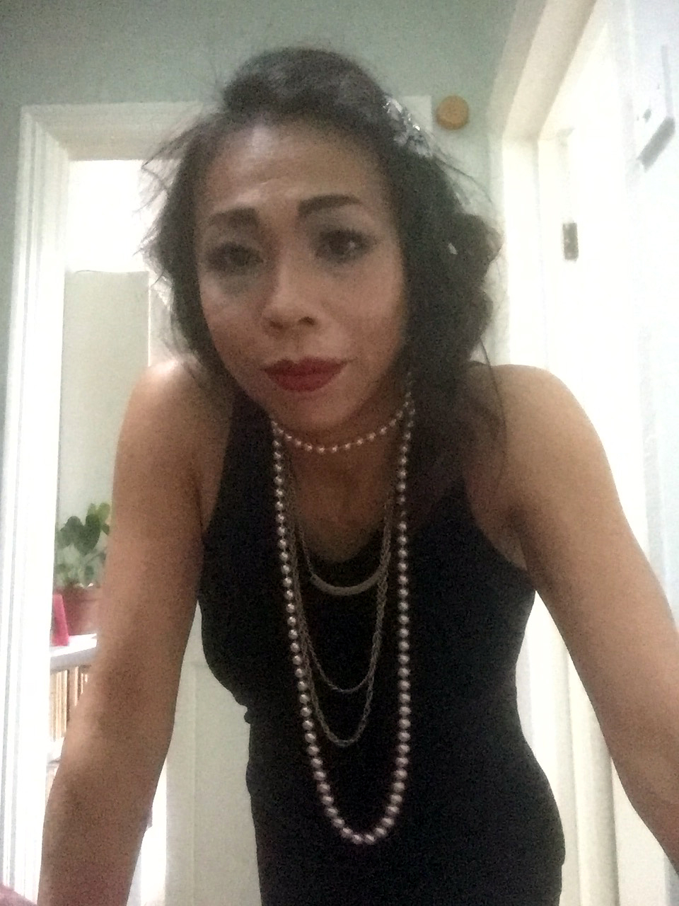 You cannot see the colour on the lids for doing a flapper look. I forgot to take a shot with eyes shut. But it is an easy technique. There are no tricks or anything special. Film makeup is like that. You’ve just really got to get the pigment on. And quick. No wishy washy colours. Go for bold tones. Deep contouring. Shape shifting. I did the whole look, hair and makeup in 35 minutes. I have applied red eyeshadow for the medium shade and a NARS glittery black for the dark shade. I changed the shape of the eyebrows completely, I straightened the brow so that there is no arch and there is a shortness to it. You can see that the brow ends before the eye ends. The short brow lifts the ageing face like mine. Actually that is the most important aspect. Once you change the brow shape, you can do anything with the rest of the look. The lipstick is No 1 Rimmel by Kate Moss.